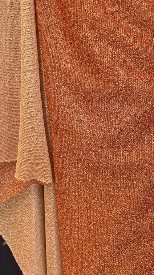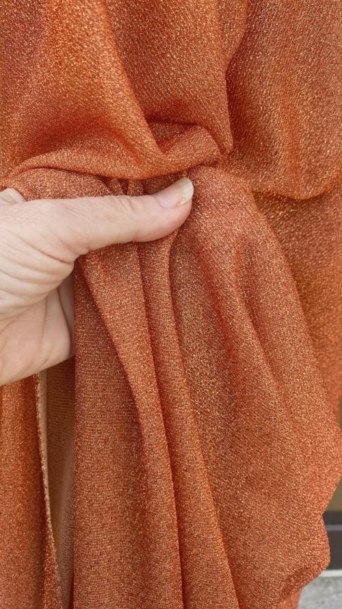 Burnt Orange lurex shiny jersey fabric for dressmaking